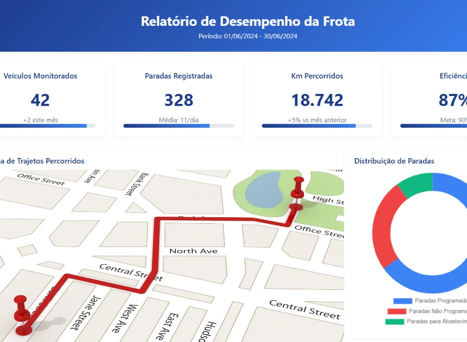 Visualize dados de toda a operação da sua frota em um mapa interativo: acompanhe localizações precisas, rotas percorridas, desvios não autorizados, violações do motorista e construa seus indicadores-chave de desempenho.